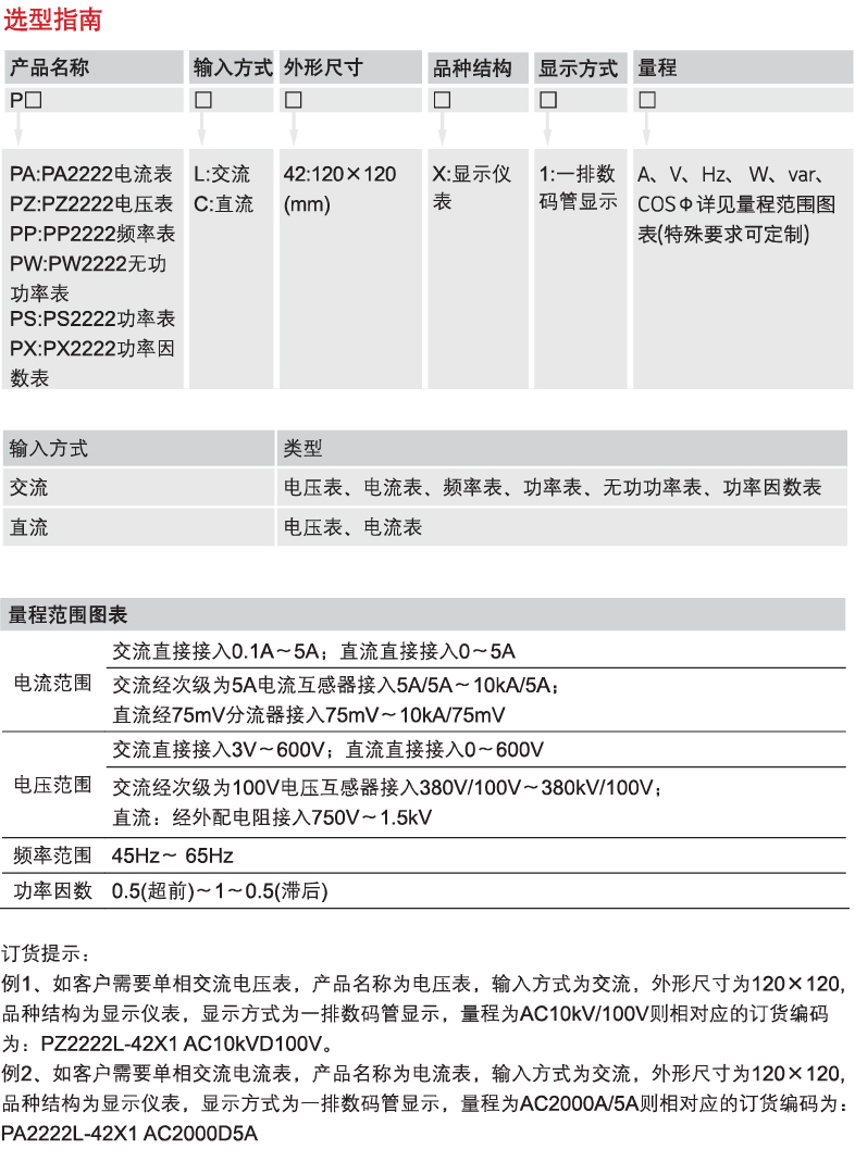P□2222□-42X1 installed digital display electrical measuring instrument is mainly used in industrial equipment, distribution panels, transmission and distribution high and low voltage switchgear, power cabinets, control cabinets, various electronic control devices as matched instrument panel