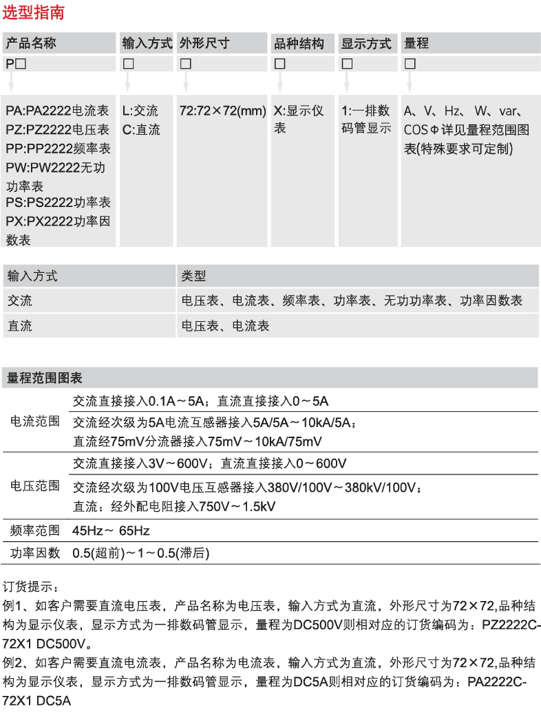 P□2222□-72X1 installed digital display electrical measuring instrument is widely used in industrial equipment, distribution panels, transmission and distribution high and low voltage switchgear, power cabinets, control cabinets, and various electronic control devices as matching instrument panel; it features with intuitive reading, high accuracy, good full-scale linearity, stable operation, reliable performance, good cost-effective performance, and four-in-one long-life high-brightness LED display.