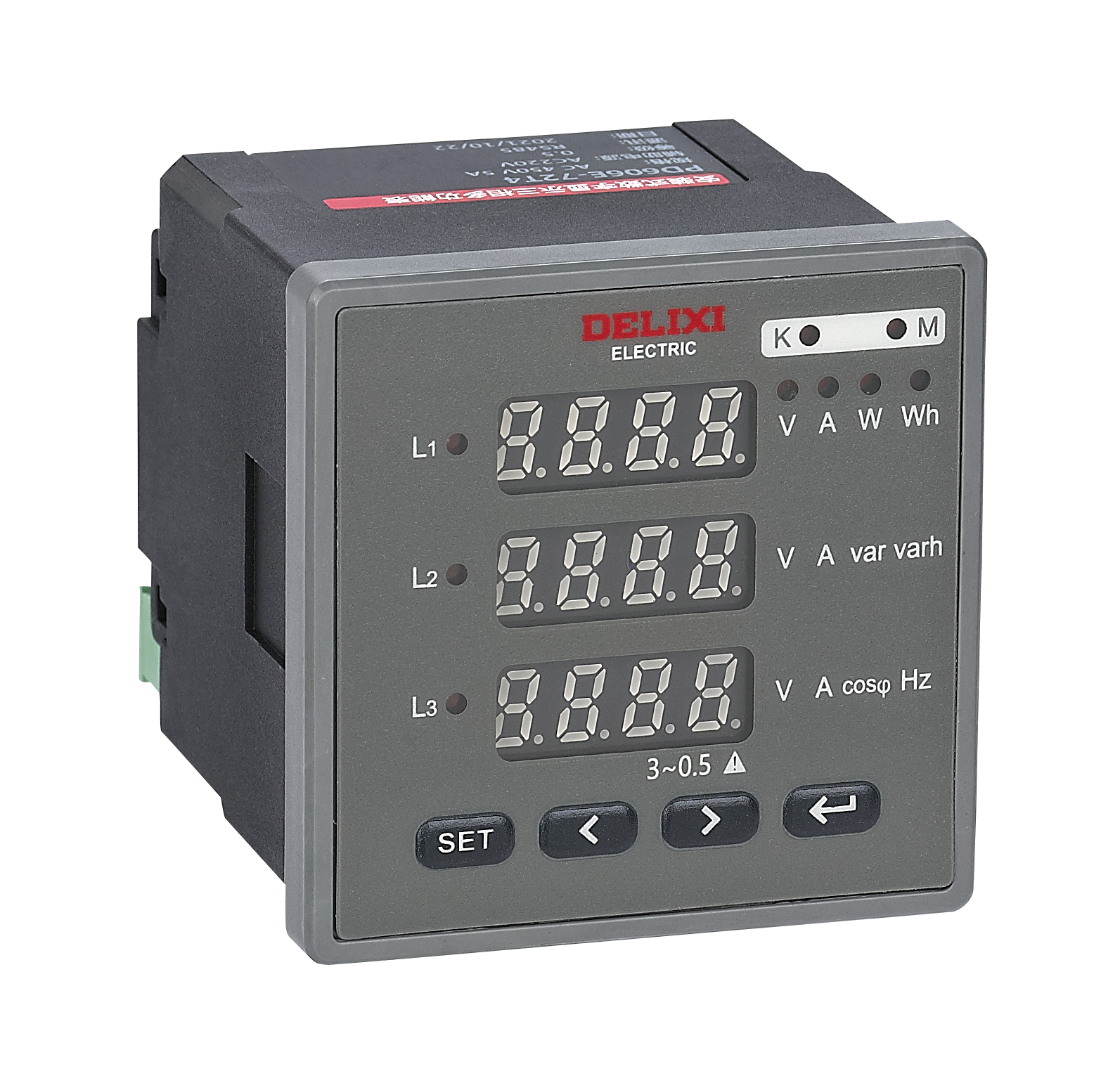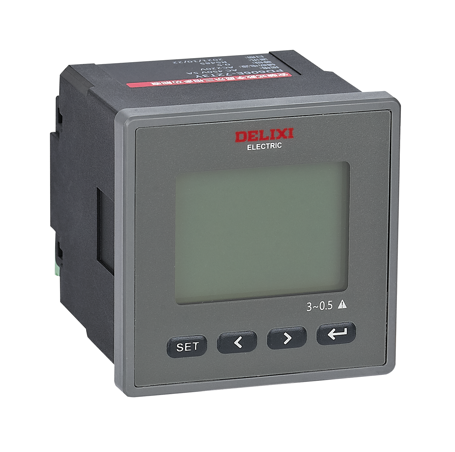 Delixi P*606E digital display electrical measuring instrument includes 8types namely three-phase multi-function meter, single-phase multi-function meter three-phase ammeter, three-phase voltmeter, single-phase ammeter, single-phase voltmeter, DC ammeter, and DC voltmeter, with 6 panel sizes (mm): 72:72×72, 6:80×80, 48:96×48, 96:96×96, 42:120×120, 482:48×48, suitable for measuring electrical parameters such as voltage, current, power, power factors, phase, and frequency in DC circuit and power frequency AC circuit, and can display the change trends of measured data. In addition to single use, it is mainly used as matched instrument panel for various high and low voltage switchgear, power cabinet, control cabinet, and a variety of electronic control devices.