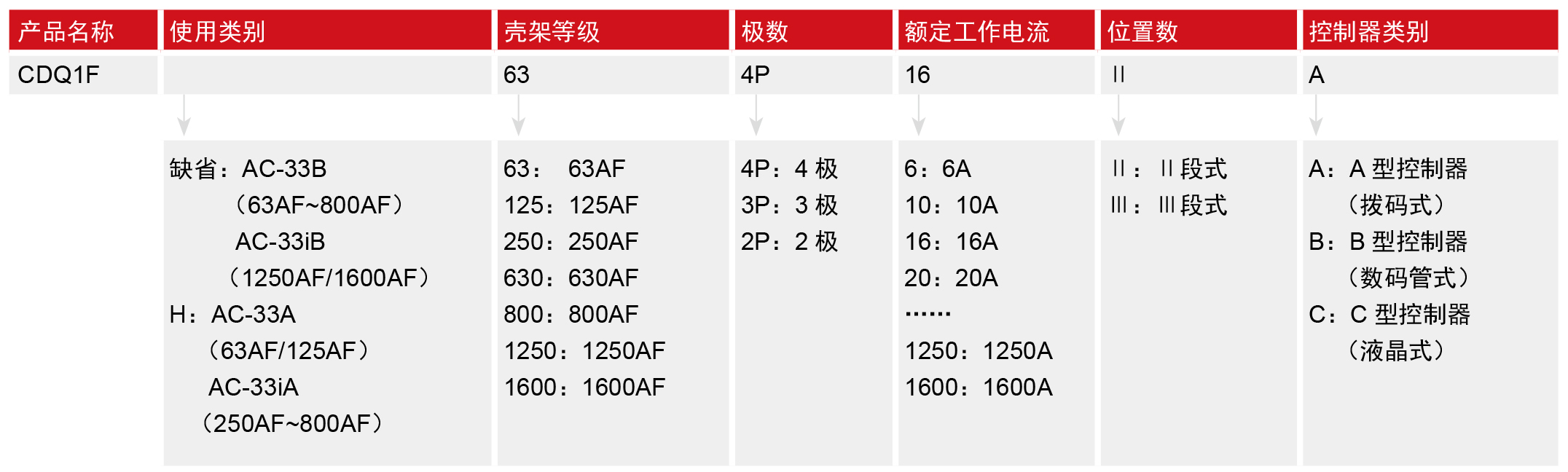 CDQ1F type PC class automatic transfer switching equipment is composed of a load disconnector (no overload and short circuit protection mechanism) and an intelligent controller. The switch adopts excitation conversion mechanism with a faster conversion speed, and can turn on/ off and carry a larger working current; furthermore, a new microcomputer control system is adopted, featuring with a more intelligent monitoring and control, strong electromagnetic compatibility, long-term continuous operation, stability and reliability. Meanwhile, the switch is equipped with LED light/LED digital tube/LCD display for simple operation and clear indication, providing users with a friendly man-machine interface.