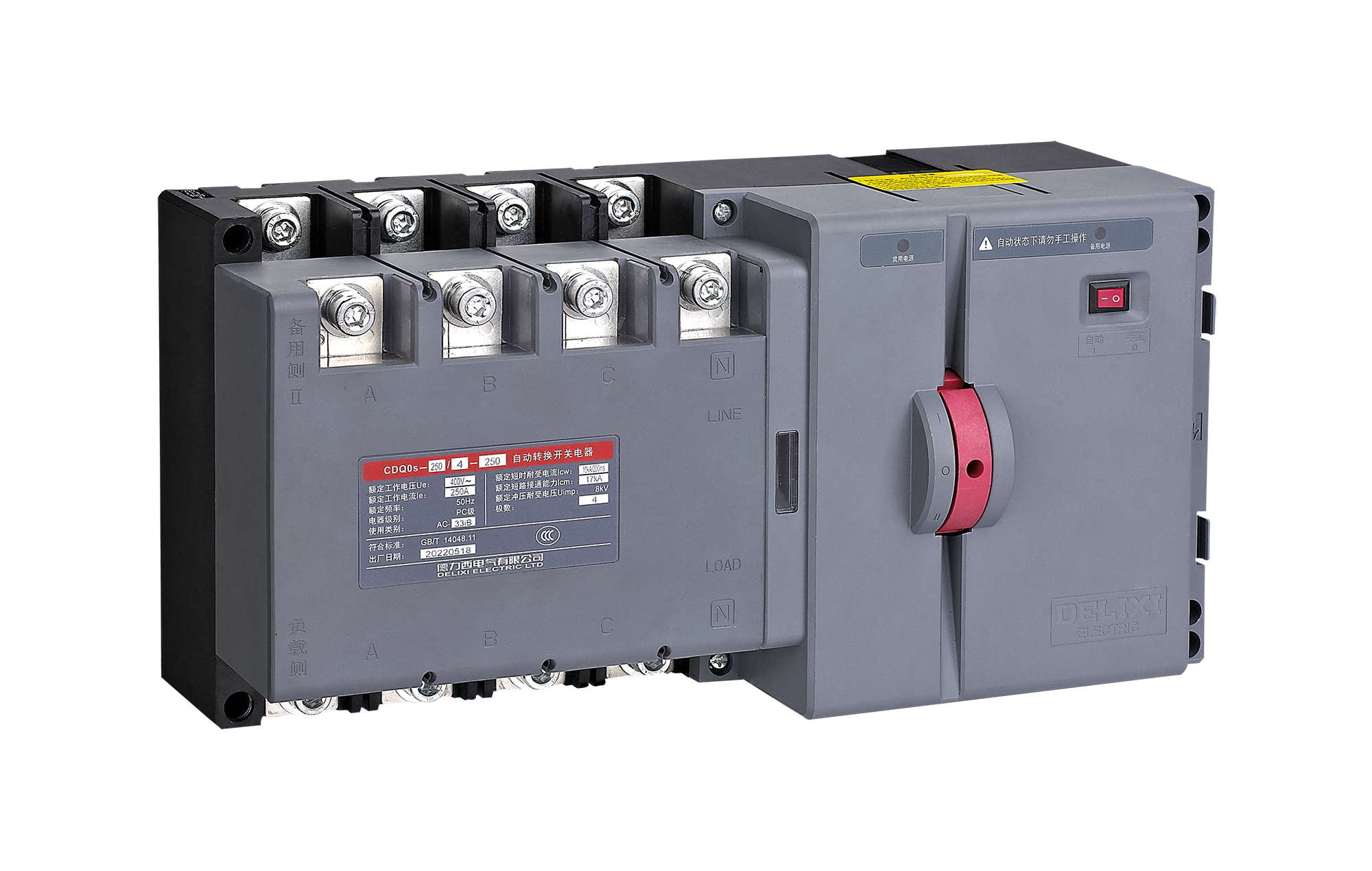 CDQ0s series PC-level automatic transfer switching equipment is suitable for 50Hz three-phase four-wire power supply and distribution system with a rated working current up to 250A and for single-phase power supply and distribution system.