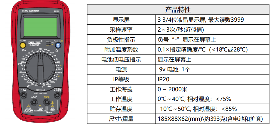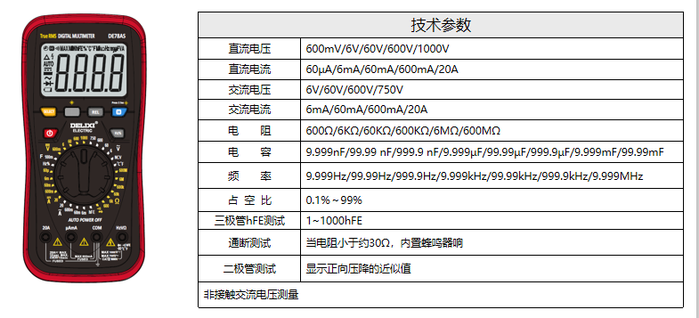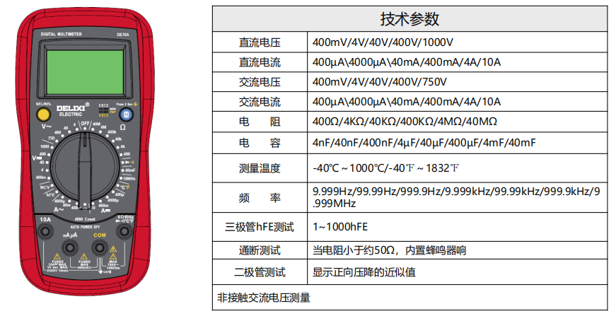 Refining curved surfaces, streamlined waist, stylish and artistic appearance Large wide-angle LCD backlight screen, without ghosting when reading at any angle Double certified ceramic fuse, with full gear protection and intelligent anti-burning function Non-contact measurement, 3 5/6 digits high accuracy true effective value, full function with multiple options