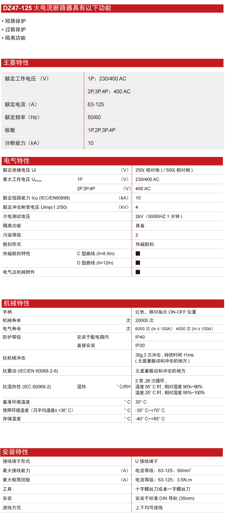 Home page >Products >Power Distribution Products >Final Distribution >Miniature Circuit Breaker >High-current Circuit Breakers >DZ47-125 High-Current Circuit Breaker