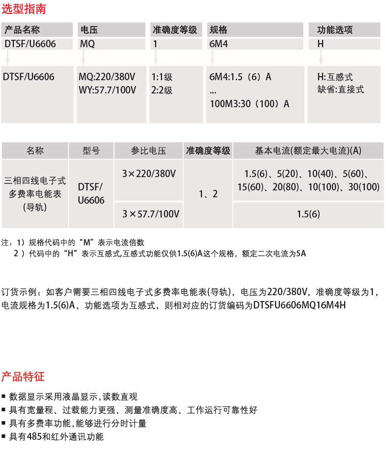DTSF/U6606 three-phase four-wire electronic multi-rate power meter (rail) is used to measure 50Hz/60Hz three-phase four-wire active electric energy.