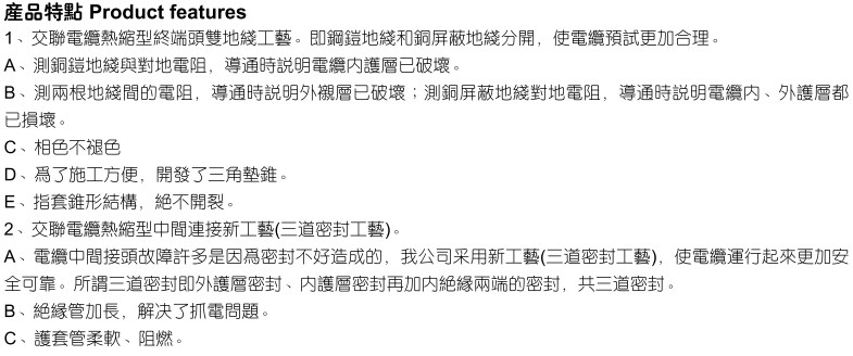 The heat shrinkable cable adopts the "three-pass seals" and "double ground wire" process