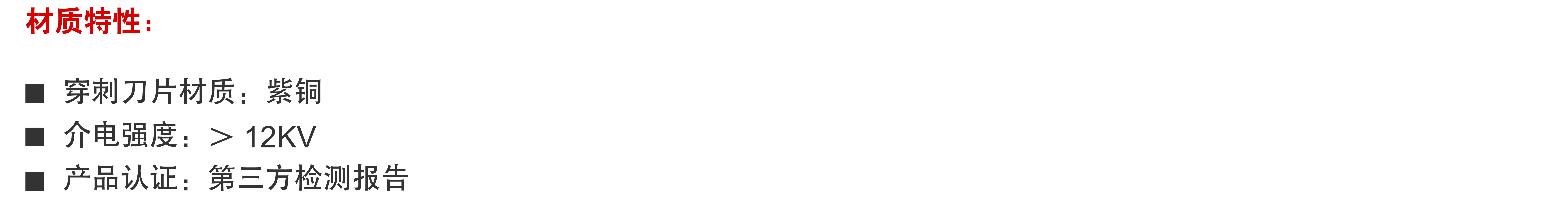 With puncture structure and simple installation, stripping the wire insulation layer in the distribution line is not required for electricity With special copper contact blade used, suitable for copper (aluminum) connection and copper aluminum transition With torque nut and constant puncture pressure, ensure a good electrical connection without causing damage to wire With self-sealing structure, moisture-proof, waterproof, anti-corrosion, prolong the life of insulated conductors and clamps