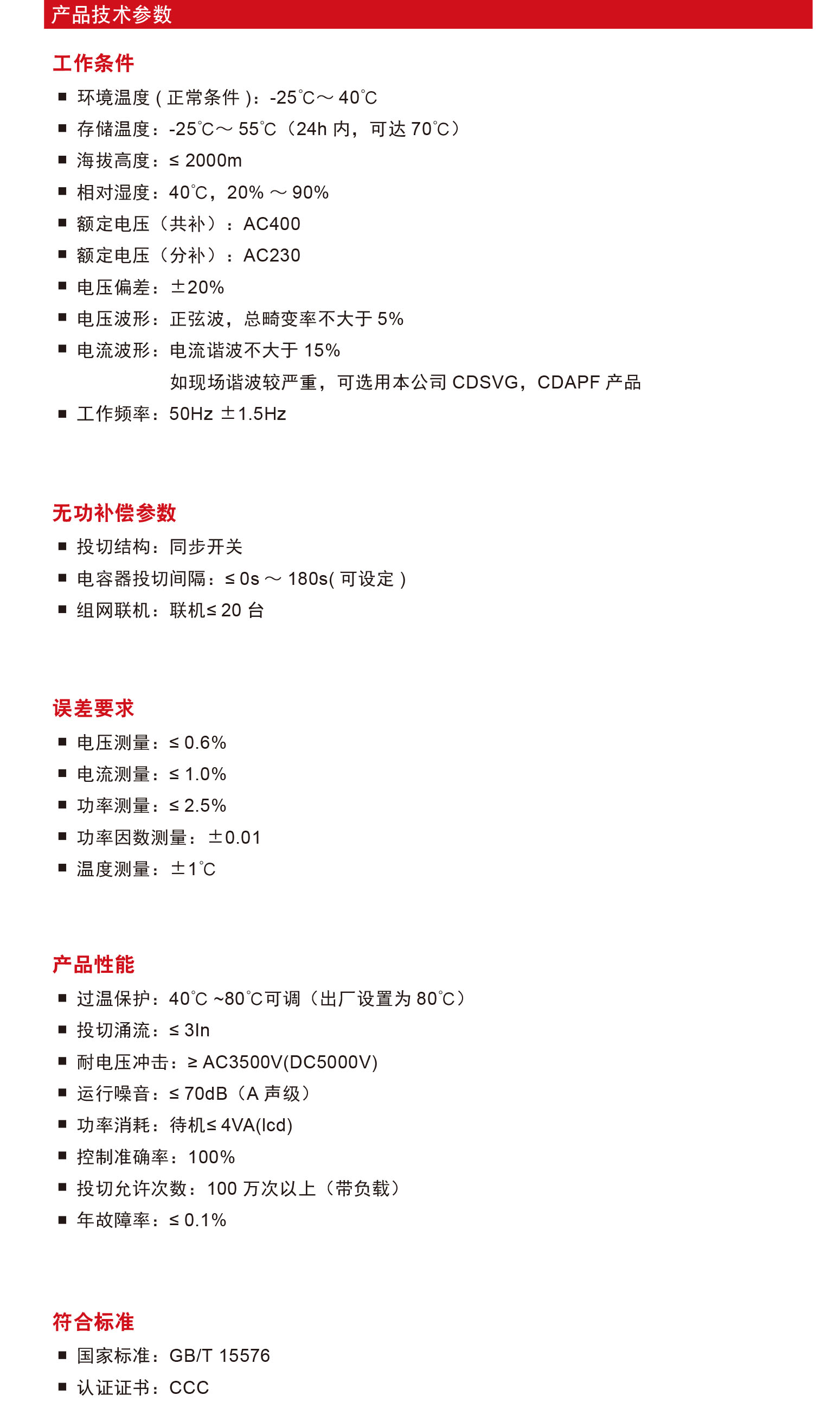 With the low-voltage power capacitor as the main body, CDCE9 series low-voltage intelligent capacitor compensation device adopts the latest technological achievements such as microelectronic software and hardware technology, micro-sensing technology, micro-network technology, and electrical manufacturing technology for intelligence to realize the series functions such as low-voltage reactive power automatic compensation function and convenient switching, protection, measurement, signal, and connection functions. It is a major breakthrough in low-voltage reactive power automatic compensation technology, and can be used in various occasions of low-voltage reactive power compensation flexibly, changing the structural mode of existing low-voltage reactive power automatic compensation equipment.