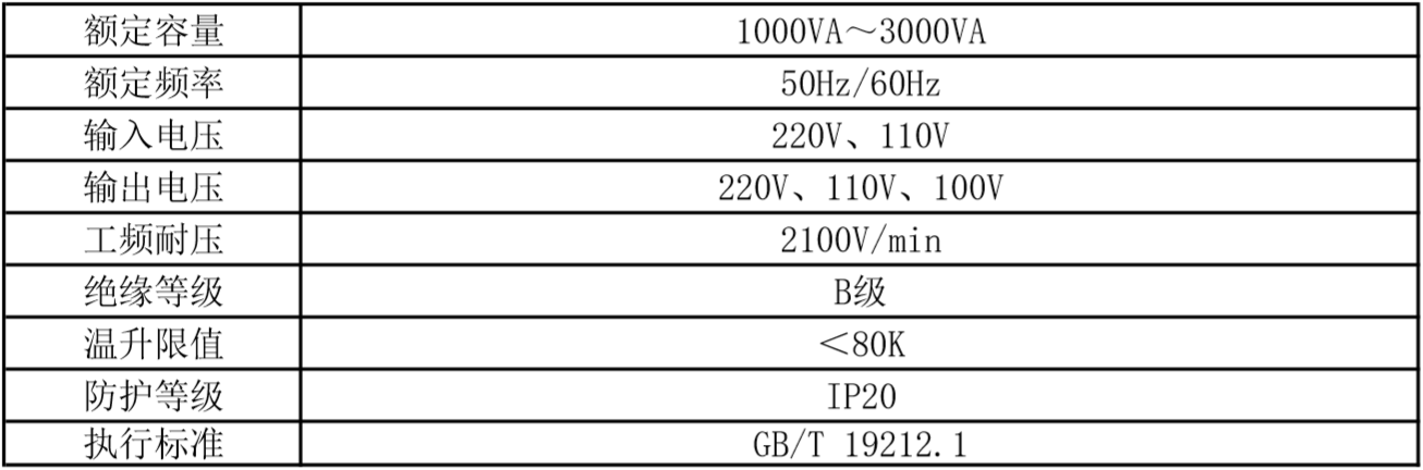 CDDZ-S series AC power transformer is a household transformer newly launched by the company on the basis of CDDZ products with a variety of practical functions such as anti-tripping when startup, timing shutdown, lightning protection, surge protection and overheating, overcurrent and overvoltage, and undervoltage protection. It is suitable for 50Hz~60Hz AC circuits, and mainly used for power conversion of low-voltage household appliances imported from or exported to the United States and Japan, such as imported rice cookers, cooking machines, face steamers, hair dryers, coffee machines, and beauty equipment. The product performance indicator complies with GB/T 19212.1.