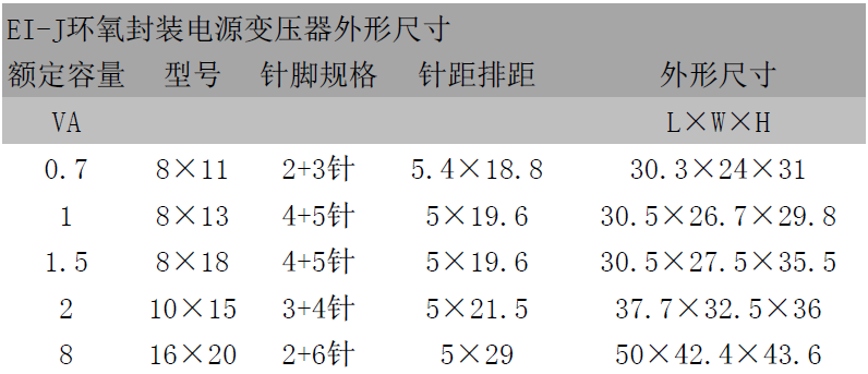 EI-J epoxy encapsulated power transformer is an extended product of the in-line circuit board, and the product is encapsulated with epoxy resin potting technology with good insulation performance, moisture-proof, flame retardant, and high electrical strength, and its durability and stability are superior to those of ordinary transformers. It is mainly used in industrial control, household appliances, medical equipment, instrumentation, and aerospace fields, as well as various PCB circuit boards.
