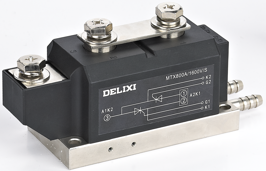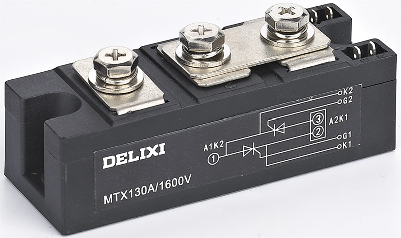 MTC, MTX series thyristor module is a switching element, and can work under high voltage and high current conditions, and its working process can be controlled. With high-power thyristor chip or rectifier chip as the core, two chips are combined into a module according to a certain circuit structure to realize switching and voltage regulation function. It is widely used in circuits of industrial heating control, AC voltage regulation, motor control, contactless switch, reactive power compensation, inverter and frequency conversion, and battery charge and discharge. The product has advantages of reliable operation, long serve life, no noise, no contact, no spark, no electromagnetic interference, fast switching speed, strong anti-interference ability, small size, impact resistance, oscillation resistance, explosion-proof, moisture-proof, and anti-corrosion features.