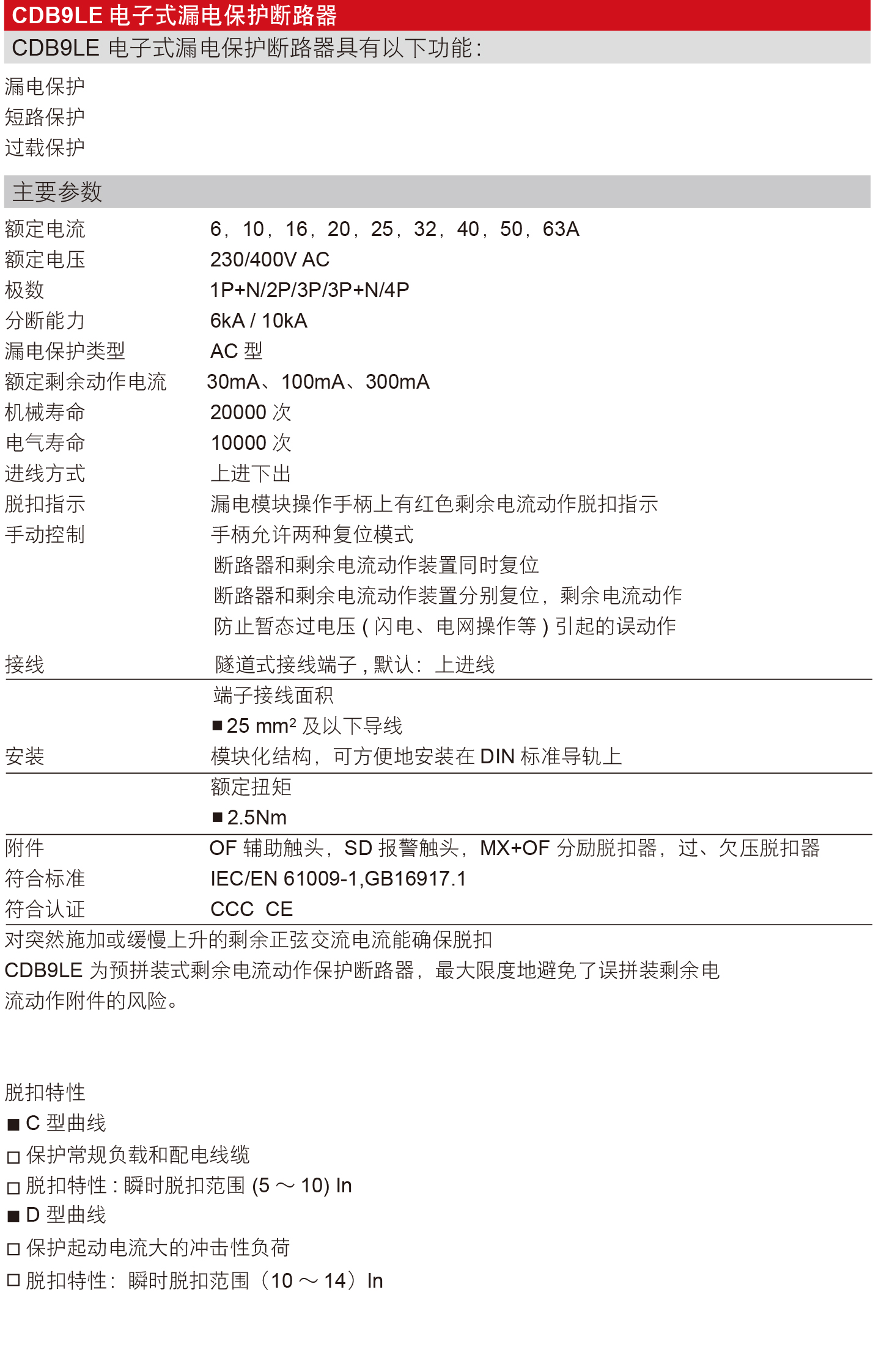 Home page >Products >Power Distribution Products >Final Distribution >Earth Leakage Protective Device >Miniature Earth Leakage Circuit Breaker >CDB9LE Miniature Earth Residual Current Circuit Breaker