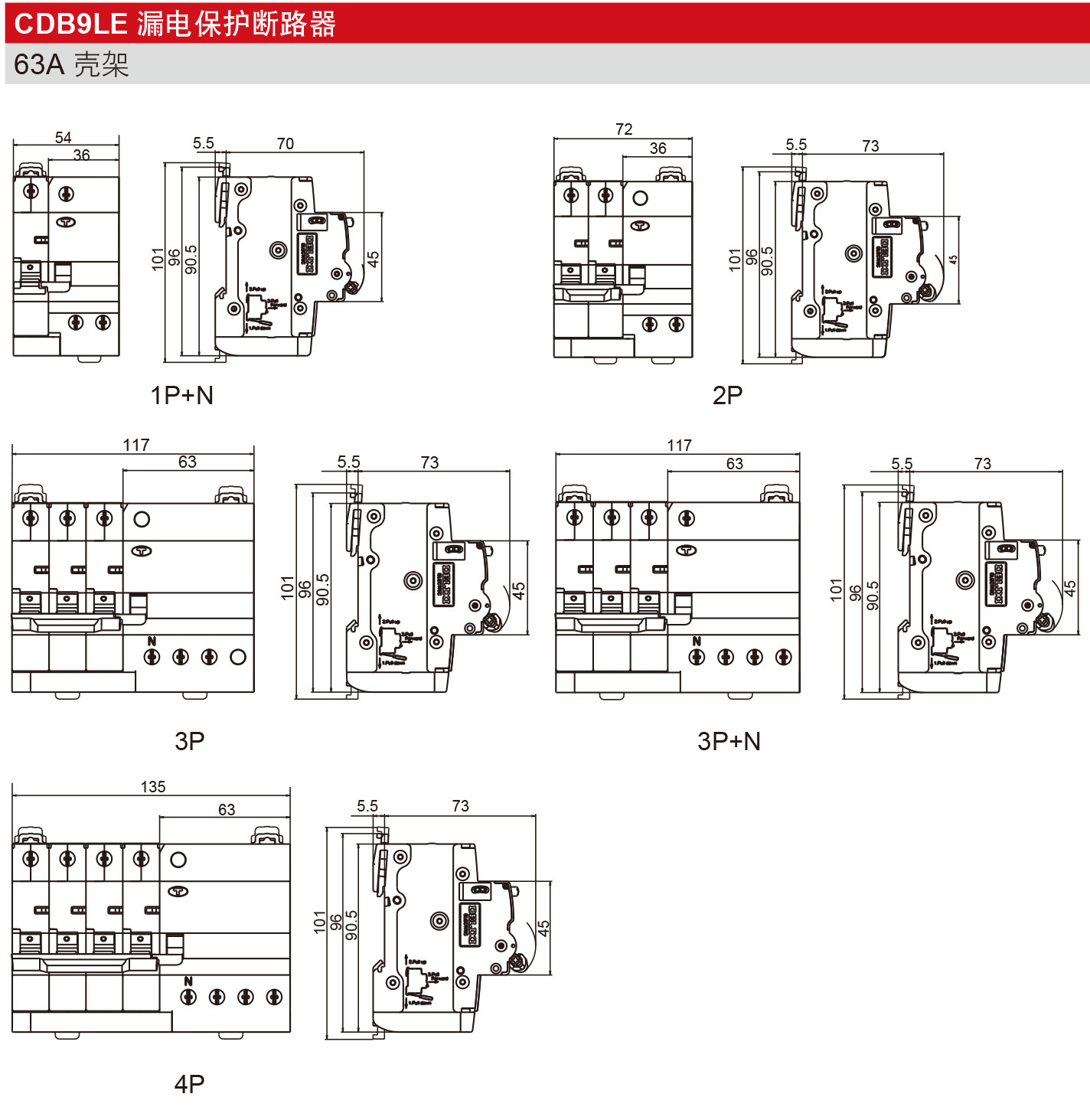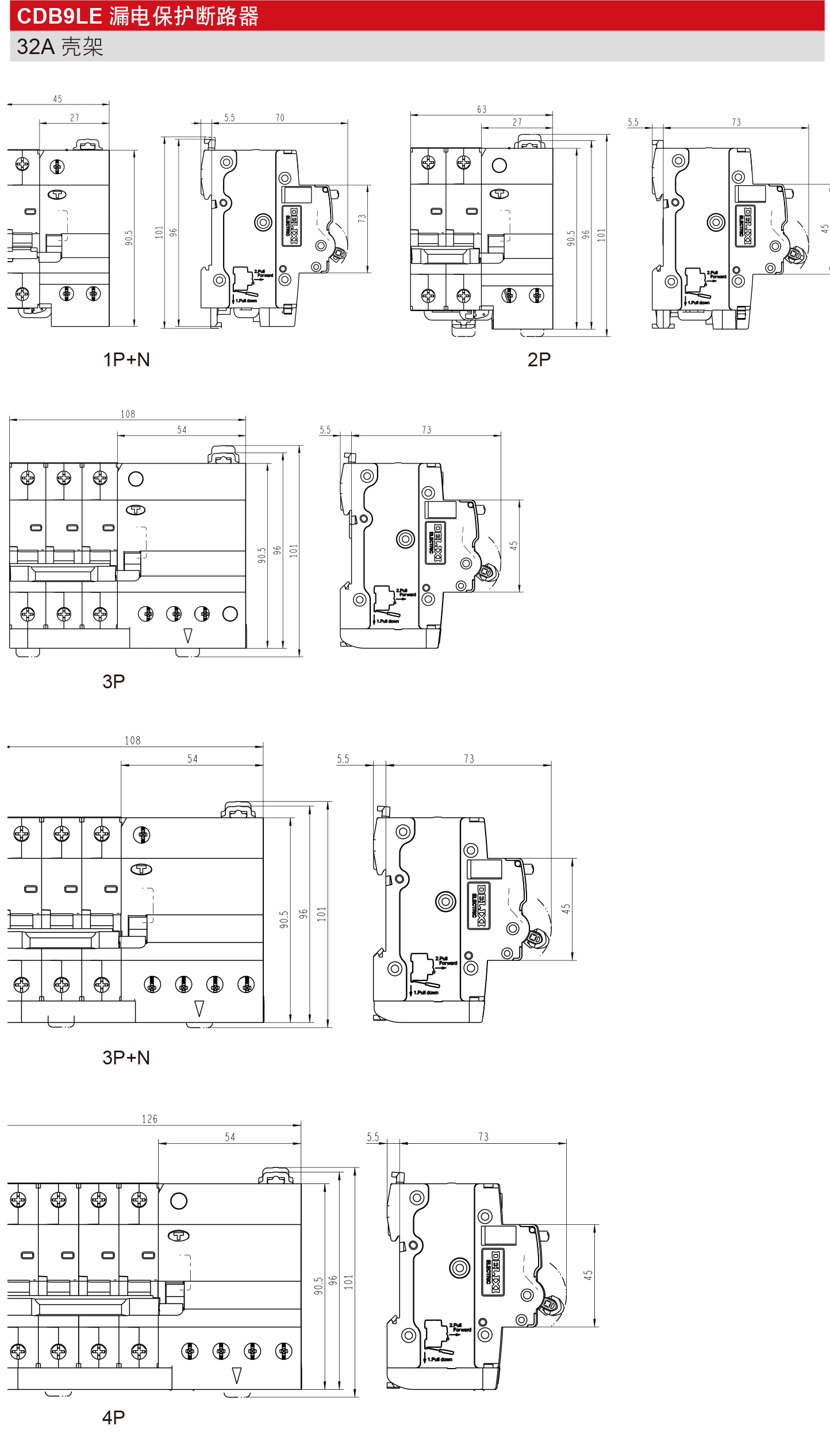 CDB9LE, CDB9LEH is suitable for AC 50HZ low-voltage terminal power distribution system with a rated voltage 230/400V and a rated current 6-63A; With overload protection, short circuit protection, leakage protection, control, and disconnection functions.