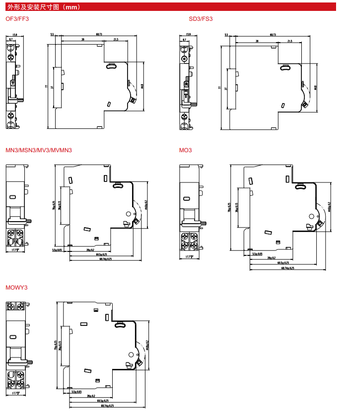 SD3 series auxiliary contacts are mainly used in AC 50/60Hz alarm circuits with a rated voltage not exceeding 415V and a rated current 1A~6A. This series of alarm contacts can realize the fault trip alarm function of remote circuit breaker by remotely connecting the alarm.