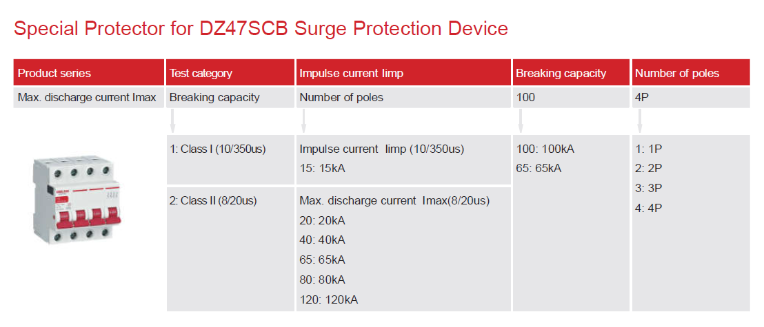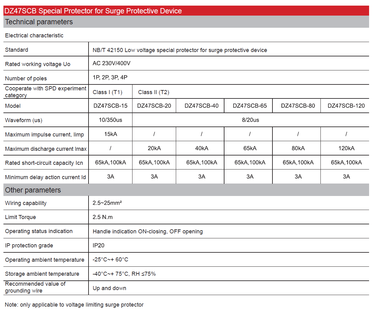 DZ47SCB series surge protector special protection device is connected in SPD loop in series to realize the function of quickly cutting off power frequency small current and high current lightning strike without trip using internal current sorting channel device. Compared with conventional backup protection devices, it has advantages of higher breaking capacity and better surge shock tolerance, and of realizing quick-cut of low short-circuit current.