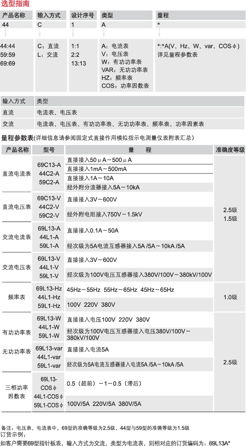 Home page >Products >Power Distribution Products >Power Management >Electrical Measuring Instruments >Analog Indicator Electrical Measuring Instruments >69C13, 69L13, 59C2, 59L1, 44C2, 44L1 Fixed Direct-Acting Analog Indicator Electrical Measuring Instrument