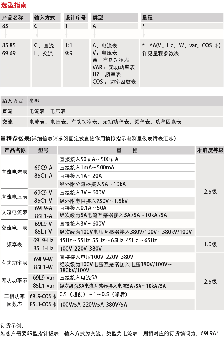 Home page >Products >Power Distribution Products >Power Management >Electrical Measuring Instruments >Analog Indicator Electrical Measuring Instruments >85C1 Type, 85L1 Type, 69C9 Type, 69L9 Fixed Direct-Acting Analog Indicator Electrical Measuring Instrument