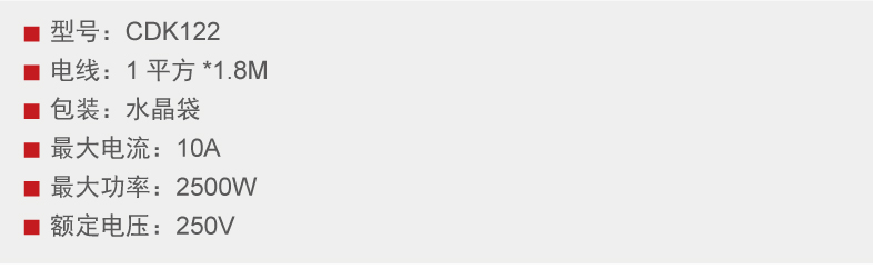 Home page >Products >Power Distribution Products >Final Distribution >Socket >(Extension Cord, Wireless, Functional) Socket >CDK 122 Extension Cord Socket (New GB)