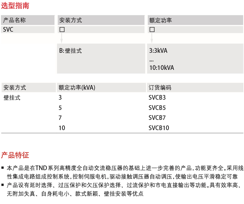 This product is further developed based on TND series high-precision automatic AC voltage regulator, with more complete functions. The control system composed of linear integrated circuits is used to control the servo motor, and to drive the contact voltage regulator for automatic voltage regulation, and has delay selection, overvoltage protection and undervoltage protection selection, overcurrent protection and mains direct output functions. It has the advantages of high efficiency, no additional distortion, low power consumption, novel style, and wall-mounted installation.