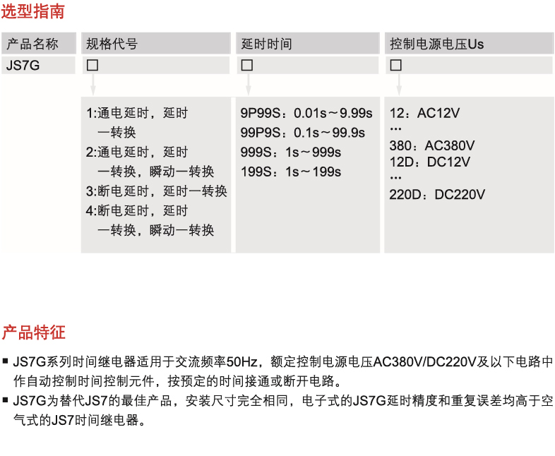 JS7G time relay adopts integrated circuit design and DIP switch setting. With high delay accuracy and low repeatability error, the JS7G time relay is the optimal alternative to JS7 products.