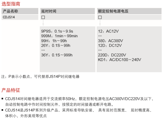 CDJS14 time relay features with small size and easy installation; it adopts single-chip integrated circuit with component chip welding and assembly welding, and has advantages of advanced technology, enhanced anti-interference ability, high delay accuracy, wide delay range, and artistic appearance.