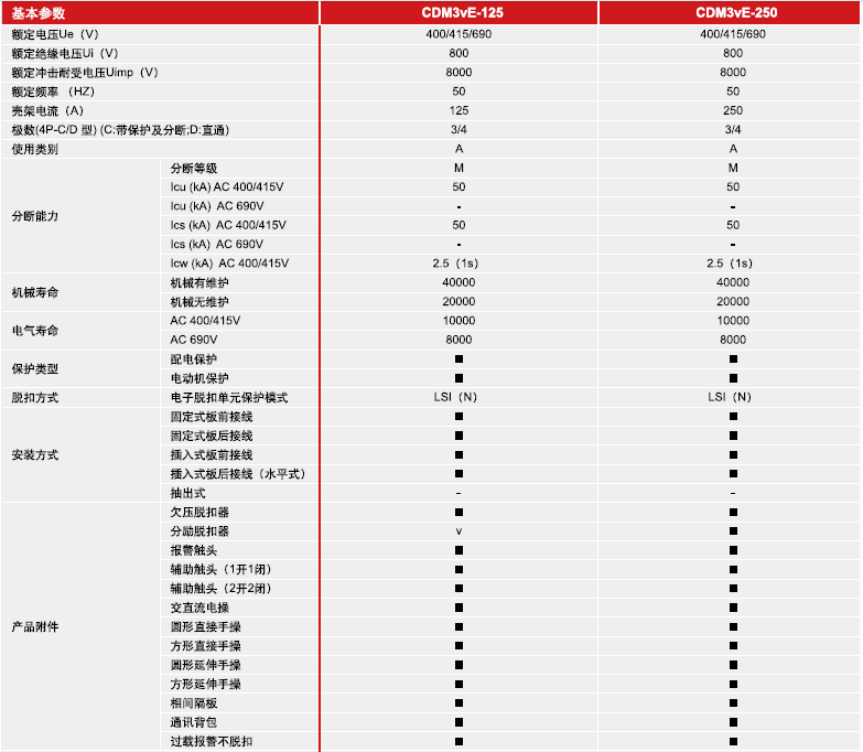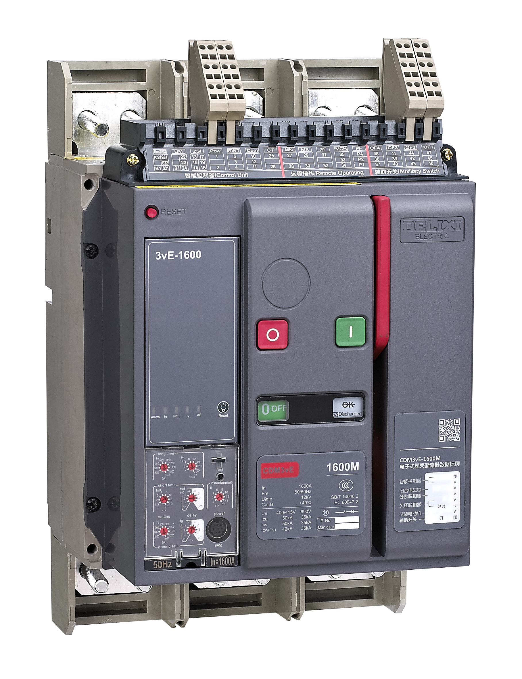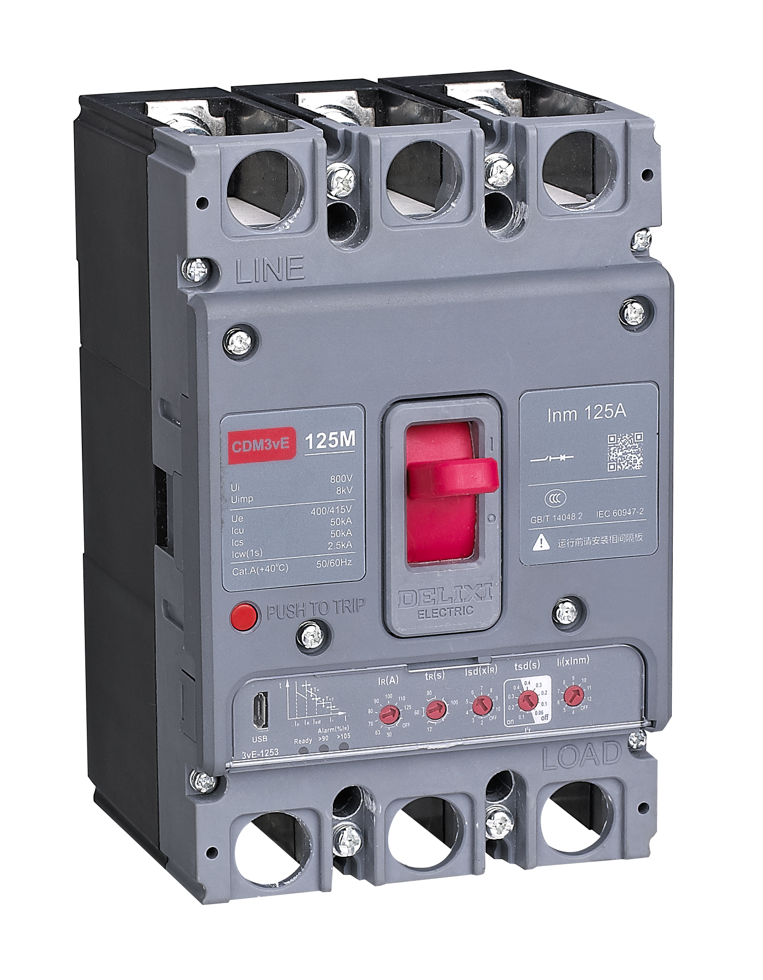 Dengfeng series electronic moulded case circuit breaker CDM3vE is a perfectly upgraded product. CDM3vE features with wide current coverage, strong breaking capacity, and remote four-remote communication to realize intelligent interconnection, and supports mobile APP communication and alarm non-trip function; the ultimate use temperature of the product can reach -40°C~70°C.