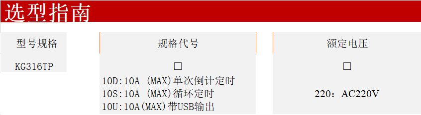 KG316TP-10U has USB interface and KG316TP-10D countdown function; KG316TP-10S has cycle timing function. Three types of time control sockets can automatically and periodically turn off/on the power supply and control the operation of the electrical equipment under the unattended conditions for energy saving, environmental protection, and extended service life of electrical appliances.