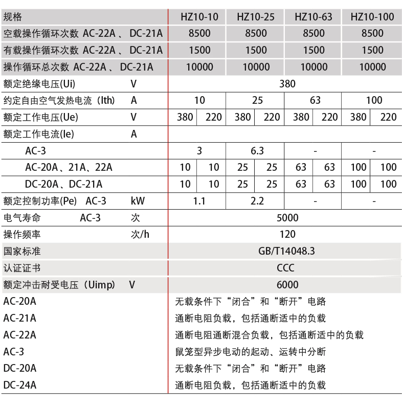 It is suitable for AC 50Hz (60Hz) electrical lines with a rated operating voltage 380V and below, a DC voltage 220V and below, and a rated current to 100A for manually and infrequently making, braking and converting AC resistance inductance hybrid load circuit and DC resistance load circuit, and also for the direct control of small-capacity AC motor.