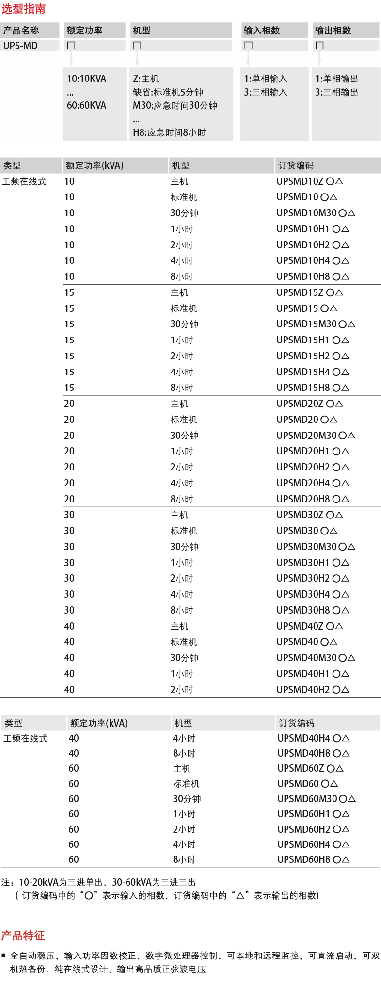Fully automatic voltage regulation, input power factor correction, digital microprocessor control, local and remote monitoring, DC start-up, dual-system hot backup, pure online design, and output of high quality sine wave voltage