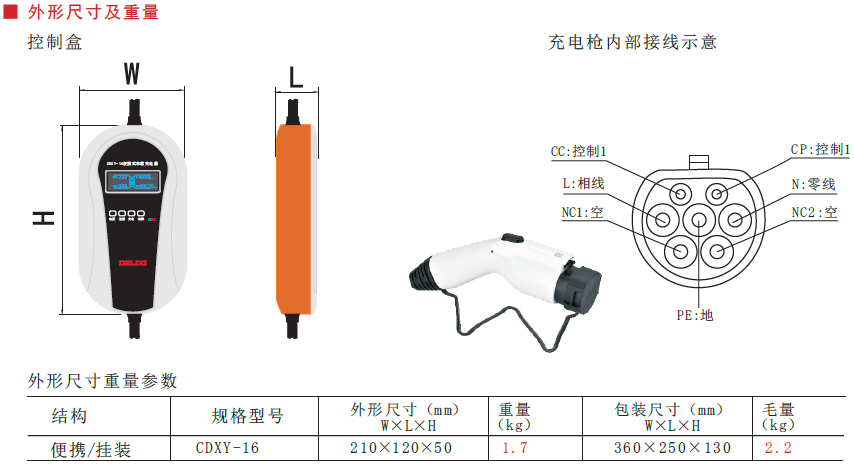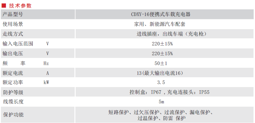CDXY-16 portable car charger is of the AC cable single gun charging type, and the product is composed of an embedded single-chip microcomputer control, a LCD liquid crystal display, a LED status indicator, and universal charging interface, integrating with display, metering, and protection; it can provide a portable, reliable AC charging power supply for new energy electric vehicles.