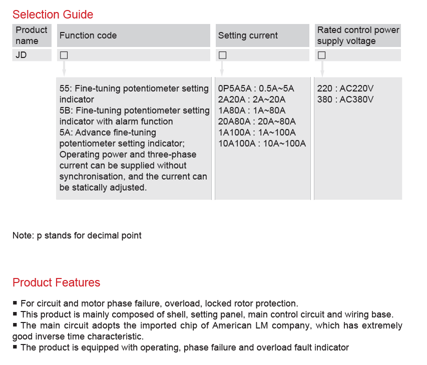 Home page >Products >Industrial Control >Motor Control And Protection >Motor Protector >JD-5 Series Motor Integrated Protector