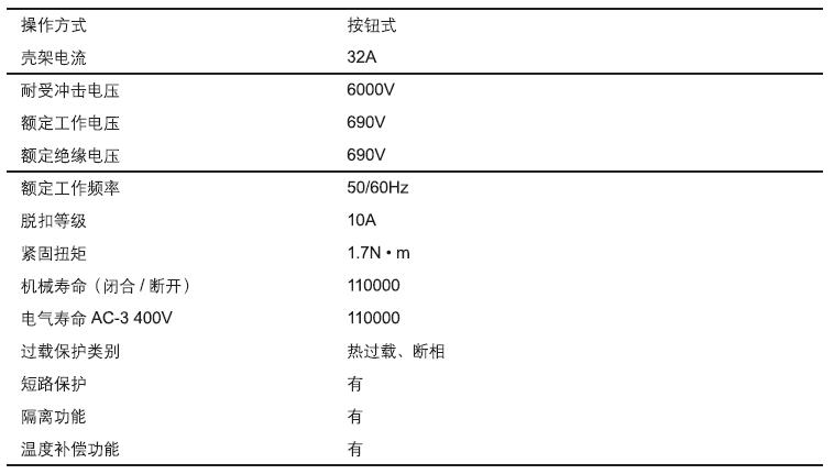 It is suitable for AC 50/60HZ applications with a rated voltage up to 690V under the AC-3 use category and with a set current range 0.1A~32A. It can replace the combination of 3-pole circuit breaker and thermal overload relay functionally for short circuit, thermal overload and phase loss protection of motor, and can be used for infrequent line conversion or direct start of motor.