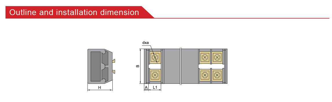 The insulation material adopts polycarbonate or ABS flame retardant materials; the metal parts are connected with copper plate type combination screws; the rated AC voltage is 500V, and the rated cross-sectional area of the connecting wire is 0.75~25mm2, and the 25mm2 C-shaped rail structure is used for installation.