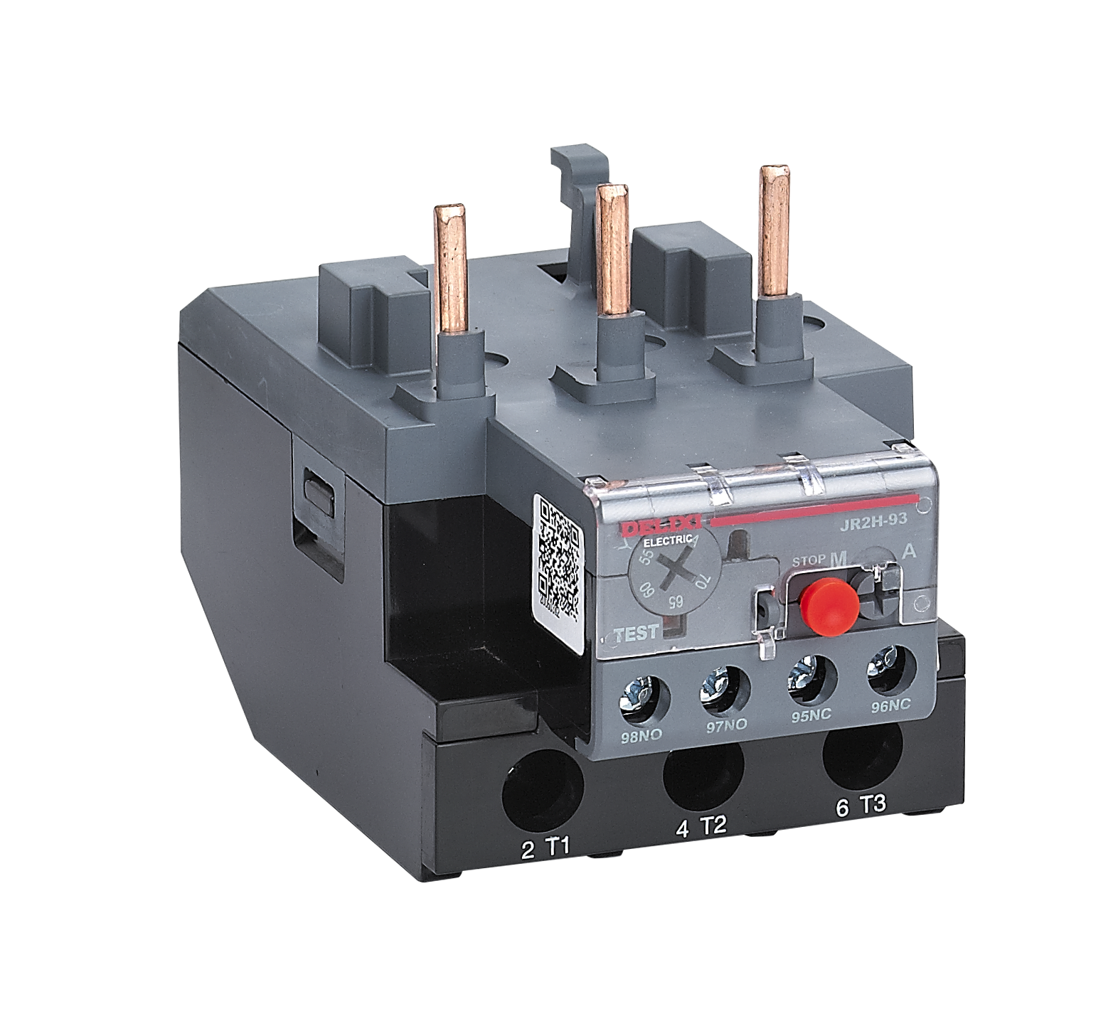 JR2H thermal overload relay is suitable for AC 50Hz/60Hz AC motor with a voltage up to 690V and a setting current ranged 0.1~93A for overload and phase loss protection during the long-term operation or intermittent operation. The thermal relay also has the action indication, automatic and manual reset, stop and test functions, and the product performance is stable and reliable. The thermal relays can be plugged in with contactors or can be installed independently.