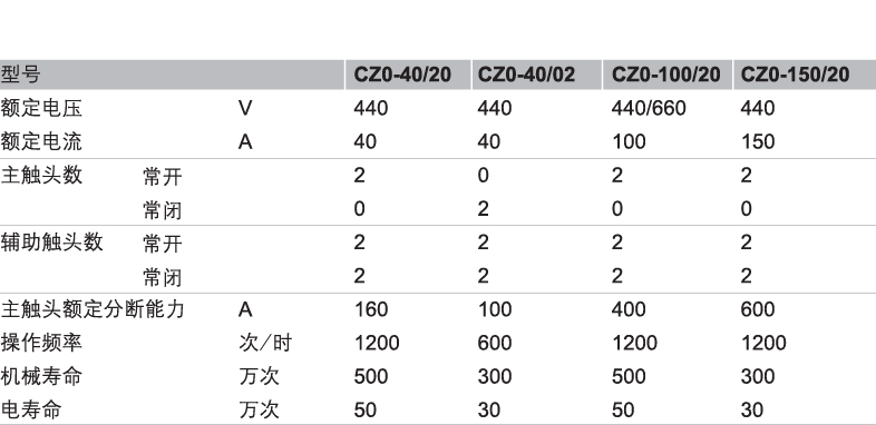 CZ0 DC contactor is mainly used to frequently make and break the DC circuits with rated voltage up to 440V and rated current up to 600A remotely, such as controlling DC motors.