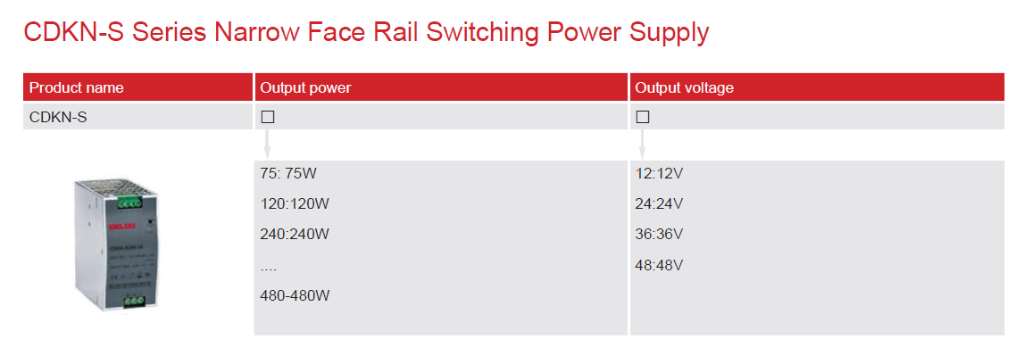 Home page >Products >Power Distribution Products >Power Supply >Universal Switching Power Supply >CDKN-S Narrow-Face Rail Switching Power Supply