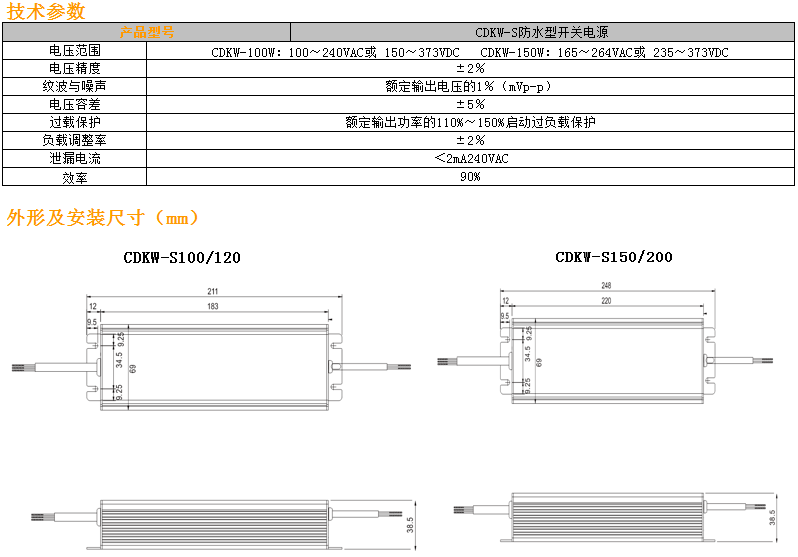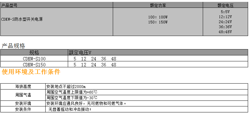 Home page >Products >Power Distribution Products >Power Supply >Universal Switching Power Supply >CDKW-S Waterproof Switching Power Supply