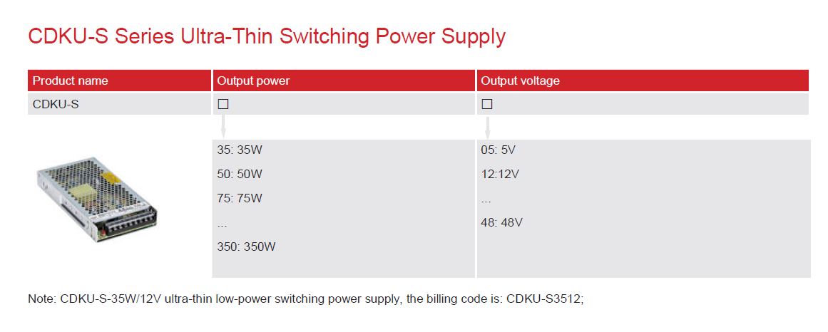 Home page >Products >Power Distribution Products >Power Supply >Universal Switching Power Supply >CDKU-S Series Ultra-Thin Switching Power Supply