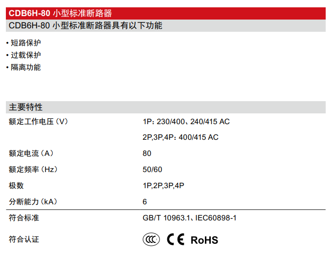 Home page >Products >Power Distribution Products >Final Distribution >Miniature Circuit Breaker >Miniaturee Standard Circuit Breaker >CDB6H-80 Miniature Circuit Breaker