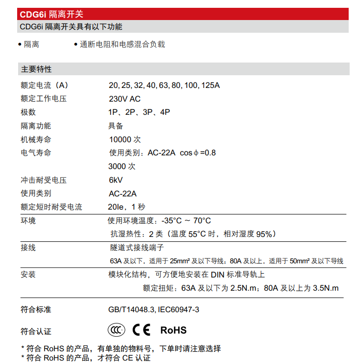 Home page >Products >Power Distribution Products >Final Distribution >Switch Disconnector >Miniaturee Disconnector >CDG6i Disconnector