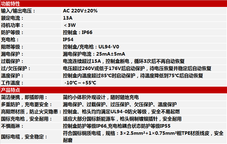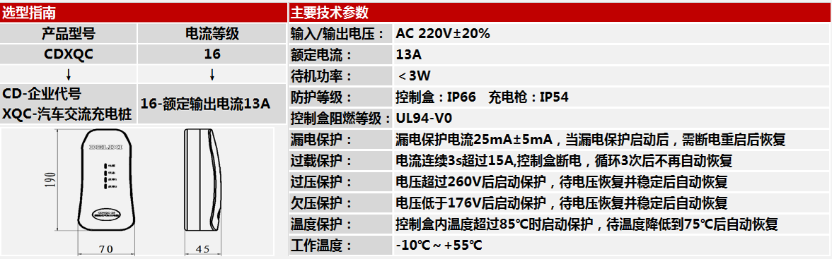 CDXQC-16 portable car charger is mainly composed of 16A plug, control box, cable, and charging gun. It is a convenient portable electric vehicle charging equipment to safely and conveniently charge the pure electric vehicles or plug-in hybrid vehicles in any place where there is a standard power interface.
