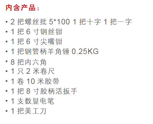 Home page >Products >Power Distribution Products >Electrical Materials >Hand Tools >Combination Tools >15 Sets Of Hand Tools - Basic Repair T1 Series
