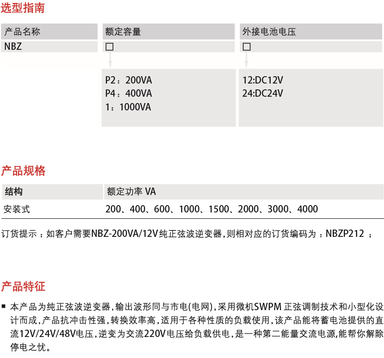 Home page >Products >Power Distribution Products >Power Supply >Inverter Power Supply >Sine Wave Inverter >NBZ-Series Pure Sine Wave Inverter