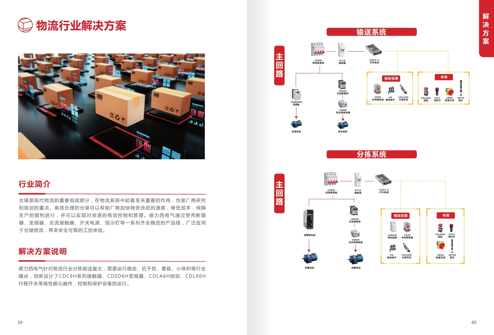 德力西電氣針對(duì)物流行業(yè)分揀輸送量大,需要運(yùn)行穩(wěn)定、抗干擾、重載、小體積等行業(yè)錦點(diǎn),創(chuàng)新設(shè)計(jì)了CDC6H系列接觸器、CDSD6H變頻器、CDLA6H按鈕.CDLX6H行程開(kāi)關(guān)等高性能元器件,控制和保護(hù)設(shè)備的運(yùn)行。